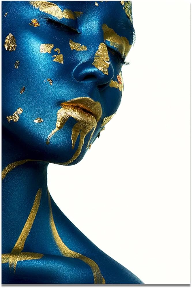 Blue Skin Gold Lips Woman Model Canvas Paintings for Living Room